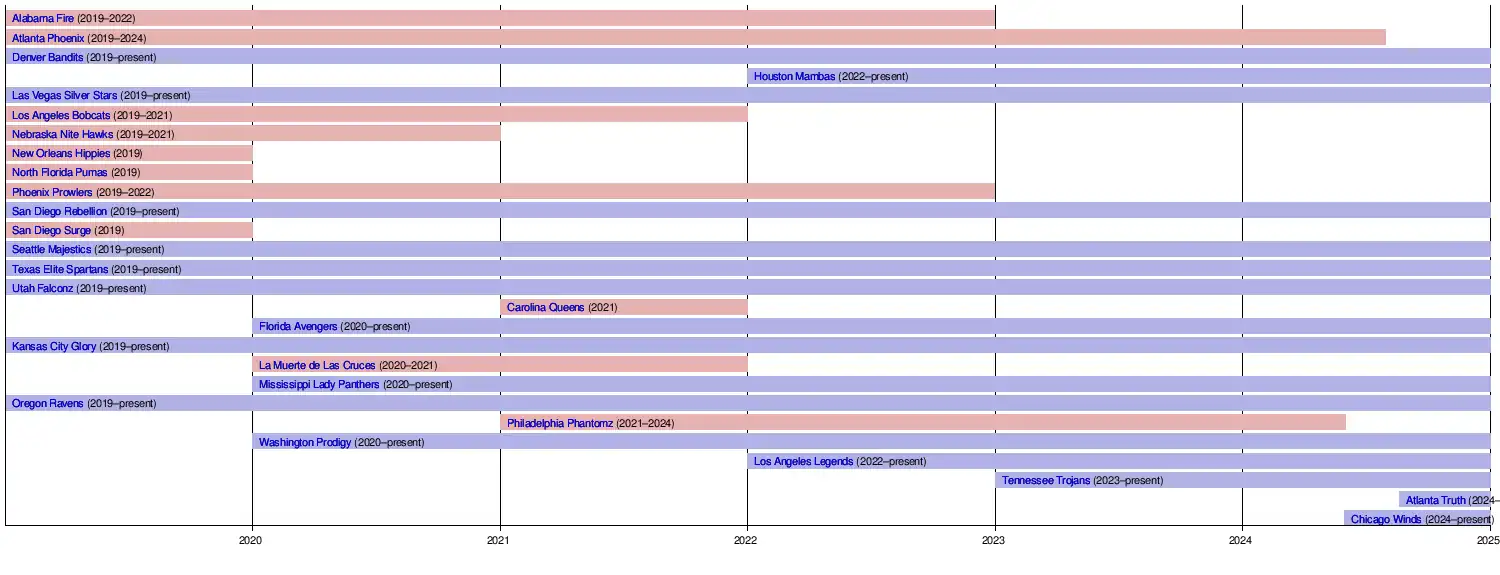 - Alabama Fire – Played in the WNFC from 2019–2022, now a member of the WFA
