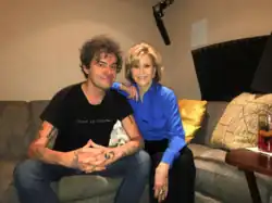 Mark Cousins with Jane Fonda at the recording of her voice over for Women Make Film, 2018