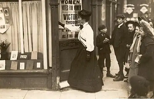 During the Civil War, women's rights movements had been pushed to the side. However, with the ending of the war and the start of Reconstruction, women began to advocate for their rights, and especially so for women's suffrage. On May 14, 1863 Susan B. Anthony and Elizabeth Cady Stanton, women's rights activists, organized a meeting of "The Loyal Women of the Nation" located in New York.[2] The meeting was held in support of the thirteenth amendment, knowing it would assist in the woman's desire and ability to vote. At the closing of the meeting, the National Woman's Loyal League was established and though the organization disbanded a little over a year later, the women were able to gather over 400,000 signatures in support of the thirteenth amendment. This organization allowed women to see the effect organizations could have and laid the foundation for many other suffrage and women organizations throughout the country.[1][2][4][19][20]