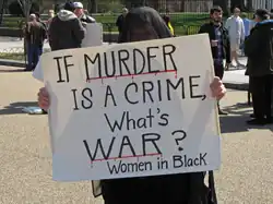 Women in Black (Hebrew: נשים בשחור, romanizedNashim BeShahor) is a women's anti-war movement with an estimated 10,000 activists around the world. The first group was formed by Israeli women in Jerusalem in 1988, following the outbreak of the First Intifada.[1]