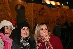 Women in Kosovo are women who live in or are from the Republic of Kosovo. As citizens of a post-war nation, some Kosovar (or Kosovan) women have become participants in the process of peace-building and establishing pro-gender equality in Kosovo's rehabilitation process.[1] Women in Kosovo have also become active in politics and law enforcement in the Republic of Kosovo. An example of which is the election of Atifete Jahjaga as the fourth President of Kosovo[a]. She was the first female,[2] the first non-partisan candidate, and the youngest to be elected to the office of the presidency in the country. Before becoming president, she served as Deputy Director of the Kosovo Police,[3] holding the rank of major general,[4] the highest among women in Southeastern Europe.[5]