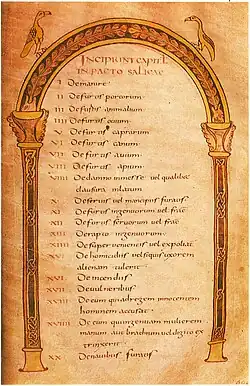 Manuscript copy on vellum from the 8th century of the Salic law. Paris, National Library of France.
