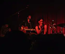 Musicologist Caroline Polk O'Meara has written that female experience, feminism and taking a pro-woman stance empowered women's participation in punk rock beginning in the 1970s.[14] In rock music, there has been a gendered "distinction between public (male) and private (female) participation" in music.[15] "[S]everal scholars have argued that men exclude women from bands or from the bands' rehearsals, recordings, performances, and other social activities."[16] "Women are mainly regarded as passive and private consumers of allegedly slick, prefabricated – hence, inferior – pop music..., excluding them from participating as high status rock musicians."[16] One of the reasons that mixed gender bands were traditionally rare was that "bands operate as tight-knit units in which homosocial solidarity – social bonds between people of the same sex... – plays a crucial role."[16] In the 1960s pop music scene, "[s]inging was sometimes an acceptable pastime for a girl, but playing an instrument...simply wasn't done."[17]