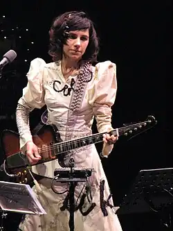 Viv Albertine (born 1954, in Sydney, Australia) is a guitarist and singer for the British punk band the Slits. Albertine was part of the inner circle of the punk bands the Clash and the Sex Pistols, and joined the Slits in 1977. She has also played with the post-punk band Flying Lizards, the dubstep-influenced New Age Steppers and the punk band the Flowers of Romance.[72]