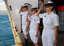 As a result of personnel shortages in the late 1980s the restriction against women in combat-related positions was dropped in May 1990, and women were for the first time allowed to serve in warships, RAAF combat squadrons and many positions in the Army.[14][16] Women were banned from positions involving physical combat, however, and were unable to serve in infantry, armoured, artillery and engineering units in the Army and clearance diving and ground defence positions in the RAN and RAAF respectively.[14][16] In 1990, three C-130 Hercules Air Force female pilots of No. 36 Squadron were employed in combat related roles.[17]