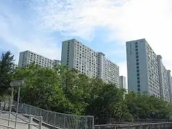 Wong Chuk Hang Estate was the only Government Low Cost Housing Estate on Hong Kong Island in the 1960s and the 1970s. It consisted of 10 residential blocks that were developed in 3 phases. Phase 1 (Block 1 and 2), Phase 2 (Block 3 to 6) and Phase 3 (Block 7 to 10) were completed in 1968, 1972 and 1973 respectively. In 1973, the estate was renamed Wong Chuk Hang Estate. In 1985, Block 9 was found to have structural problems by Hong Kong Housing Authority, and was demolished in 1988.[1][2][3] In 2007, the whole estate was cleared and most of the tenants were moved to the nearby Shek Pai Wan Estate.[4] The site has been replaced by the MTR Wong Chuk Hang station, one of the railway stations of the South Island line, and a railway depot.[5]