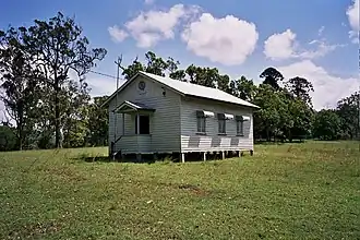 Wonglepong Queensland Country Women's Association (QCWA) hall is a small, one roomed weatherboard structure in a rural setting. It is situated on a leasehold block in the district of Wonglepong north of Canungra in Beaudesert Shire (now Scenic Rim Region). The hall was built specifically for the Wonglepong branch of QCWA in 1935. The branch continues to use the hall and it remains largely unchanged from the time of its construction.[1]