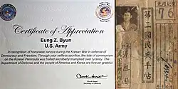 - Icheon National Cemetery, Operational Areas of the 5816 Guerrilla Unit (Korea Liaison Office) in the Korean War, in which Eungzou Byun Served