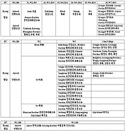 Ryang(良)○ Eung(應)○ ○Yong(龍) ○Su(秀) ○Jong(宗) |