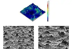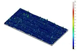 Sanding is very good at removing defects at wood surfaces, but it creates a surface that contains minute scratches in the form of microscopic valleys and ridges, and also slivers of wood cell wall material that are attached to the underlying wood.[20][21][22] These sanding ridges and slivers of wood swell and spring-up, respectively, when sanded wood is finished with water-based finishes, creating a rough fuzzy surface. This defect is known as grain raising. It can be eliminated by wetting the surface with water, leaving the wood to dry and then lightly sanding the wood to remove the ‘raised grain’.[19]