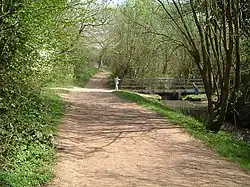 The Country Park was set up in 1984, having previously been rural land with smallholdings and larger farms. The farms were in the ownership of Birmingham Corporation by 1953 but public access was not allowed in order to protect crops and livestock. Paul Cadbury mooted the idea of opening up the valley by providing marked trails for walkers, tracks for horseriding and stabling for horses, picnic sites and car parking. He also proposed damming a section of the Bourn Brook for fishing and allowing children freedom to paddle in the shallows.[2] The city council's Parks Committee viewed the proposal favourably but said there was a problem financing the necessary fencing. In response chocolate firm Cadbury's, of which Paul Cadbury was vice-chairman and managing director offered to donate £3,500 towards the cost.[3] In July 1956, the Public Works Committee unanimously decided not to build on the Woodgate Valley.[4] A decade later the Council put forward a proposal to develop 150 acres of the 600-acre Woodgate Valley farmland for 2,000 homes.[5] By 1976, on the northern side of the valley the Simmonds Drive/Highfield Lane housing development had been built and on the southern side had arisen the South Woodgate estate of mixed council and private housing.[6] All the Birmingham Corporation farms disappeared, though Hole Farm is remembered in the name of a horse riding and trekking centre.