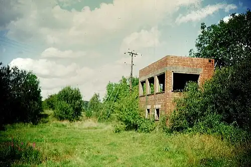 Like most country stations on the line it originally consisted of two platforms, the southbound platform on the passing loop. Since the station was built on a bank it was not possible to construct strong foundations for a brick-built station building. Hence this was the only station on the line with a wooden station building located on the southbound platform. Two sidings and a headshunt were built to the south of the station for goods. These were primarily used for horses and wood cut from nearby pine forests.