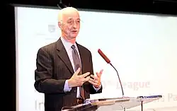 In 1990, Flowers began working with Dean Kamen on FIRST (For Inspiration and Recognition of Science and Technology), a project to inspire a culture that celebrates science and technology.[18] Taking elements from 2.70, they created the FIRST Robotics Competition (FRC) in 1992, which evolved into an international competition involving 3,647 teams and serving more than 91,000 students as of 2020.[19][20][21] Flowers introduced the phrase "gracious professionalism"[22] to FIRST, an idea which has since pervaded FIRST literature and culture.[23] Flowers served every year as National Advisor to FIRST.[24] He was active at FIRST events, working as an MC and being treated along with Kamen "like heroes."[23]