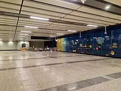 Designated as a Civil Defence (CD) shelter, its large interior is designed to accommodate up to 9,000 people in emergencies. The walls, floor and roof slabs are strengthened with reinforced concrete, and the station has facilities for people to undergo decontamination.[51] As a result of the CD guidelines, the station is more spacious that will allow it to support higher passenger capacity in the future.[24]