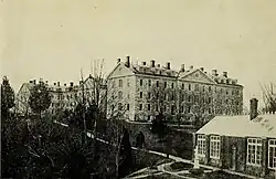 After unsuccessful efforts to establish a divinity school in Boston, New York, and Washington D.C., 249 acres were purchased in Woodstock in 1866, where construction of Woodstock College soon followed.[4] The college was originally located along the Patapsco River in Woodstock, Maryland, west of Baltimore. It incorporated in 1867, and opened on September 22, 1869.[5] At the time, the college was the only Jesuit seminary in the United States and was intended to be where the majority of all American Jesuit priests would be trained in the future.[4]