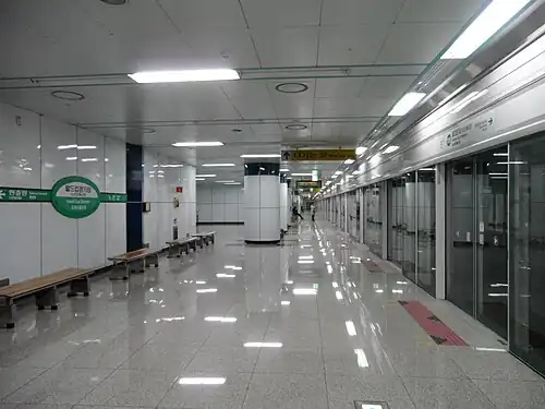 World Cup Stadium Station (Korean월드컵경기장역; Hanja월드컵競技場驛) is a station of Daejeon Metro Line 1 in Noeun-dong, Yuseong District, Daejeon, South Korea.