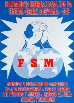 The World Federation of Trade Unions (WFTU) is an international federation of trade unions established on October 3, 1945.[2] Founded in the immediate aftermath of World War Two, the organization built on the pre-war legacy of the International Federation of Trade Unions as a single structure for trade unions world-wide, following the World Trade Union Conference in London, United Kingdom.[3]