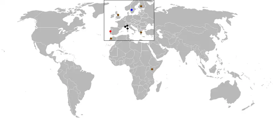 1975 World Rally Championship event map