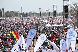 In his last appearance in Panama, before the 19,500 volunteers of the Journey, the Pope made a speech with which he concluded his visit.[48] Three of these young people made a brief address to the Pope, expressing their experiences of volunteering and participating in WYD. Archbishop Mendieta spoke briefly, thanking the Pope for his example and assuring the Pontiff of their prayers: "Count on the prayer of this youth."[49] The Pope took leave of the authorities and departed for Rome.[50][51]