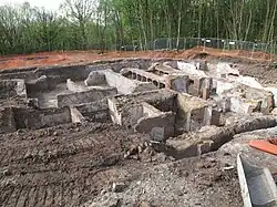 In 2011, an archaeological excavation of the site of the New Hall, funded by Peel and carried out by the University of Salford, revealed that some of the basement of the house and its foundations were still in existence. Between March and December 2012, Peel also funded a community dig on the site and an archive and outreach project at the University of Salford which generated a number of oral history recordings and a guide to historical sources about the New Hall.[9]