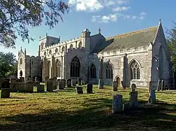 The parish church is dedicated to Saint Mary and Saint Nicholas, and is built in the Perpendicular style of the 12th century.[8][9] In the period between 1154 and 1189, the church and much land came under the governance of Waltham Abbey in Essex, which supplied its priests. It is recorded that in the glass of the east window was an inscription in Latin which translated means "Tomas de Wyversty, Abbot of Waltham had me made".[8] The building later fell into disrepair, but was restored in the 14th century.[8] The chancel was restored again between 1875 and 1878 by Ewan Christian.[8][9] A plaque in the church commemorates some American airmen who died when their plane crashed on Wrangle Common in 1944 during the Second World War. It is a Grade I listed building.[8]