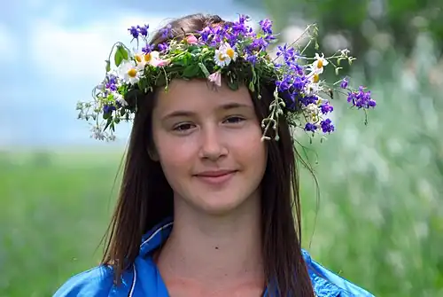 A tradition of the wreath,[7] a headdress made of leaves, flowers and branches worn by girls and young unmarried women, dates back to the old Slavic customs that predate the Christianization of Rus. The flower wreath remains a part of the Ukrainian national costume and is worn on festive occasions and holy days.
