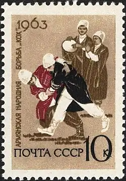 Kokh (Armenian: Կոխ) is the Armenian national wrestling,[5][6] known since the Early Middle Ages.[7] It's considered to be one of the oldest forms of wrestling.[5] It had influenced the Soviet martial sport Sambo.[8]
