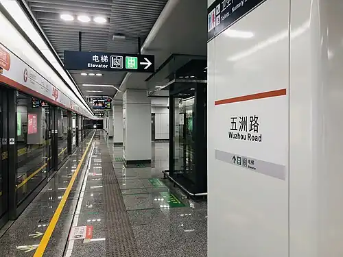 Wuzhou Road (Chinese: 五洲路) is a metro station of Line 9 of the Hangzhou Metro in China. It is located in Linping District of Hangzhou.[1] The station was opened on 17 September 2021.[2]