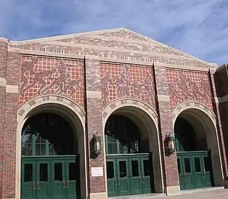 Wyandotte High School is a fully accredited public high school located in Kansas City, Kansas, United States. It serves students in grades 9 to 12 and operated by the Kansas City USD 500 school district. The building itself is a historic and notable public building, which was listed on the National Register of Historic Places in 1986. The school principal is Brian Guliford. The mascot is the Bulldog and the school colors are red and white.[6][7]