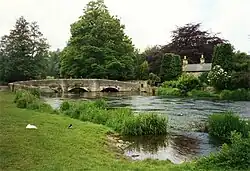The Monsal Trail passes over the Monsal Headstone viaduct which was built in 1863 by the Midland Railway over the River Wye. It is 90 metres (300 ft) long and up to 20 metres (66 ft) high.[16] Fin Cop hill overlooks Monsal Dale and its Iron Age hillfort is a Scheduled Monument.[17] The A6 road runs down Taddington Dale to follow the riverside again, where Deep Dale converges with the valley on the south side. Kirk Dale lies on the south side at Ashford-in-the-Water.