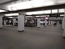 The station opened on 28 February 1932.[4] Wynyard was originally constructed with six platforms (the existing four platforms are still numbered from 3 to 6), with platforms 1-4 located on the upper level and platforms 5 and 6 on the lower level. The original intention was that Platforms 1 and 2, located adjacent to platforms 3 and 4, would eventually serve the eastern pair of railway tracks across the Harbour Bridge for a proposed railway line to the Northern Beaches. In the interim, with construction yet to begin on the Northern Beaches line due to lack of funds, they were used as a terminus for North Shore tram services on Sydney's tram network, operating from the bridge's opening in 1932 until 1958. A feature of these lines was Australia's only underground tram terminus.[1] On 22 January 1956, the lines from platforms 5 and 6 were extended to Circular Quay as part of the City Circle.[1]