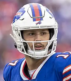 - Josh Allen (born 1996), quarterback - a late recruit in 2015, Allen led the team to its first appearance in the Mountain-West Conference championship game in 2016 and two bowl games, receiving All-Mountain West honors. He finished his Wyoming career with 5,066 passing yards, 44 passing touchdowns, and 56 overall touchdowns, which rank in the top five for Wyoming Cowboys passing statistics. He was drafted 7th overall by the Buffalo Bills in 2018, becoming the highest drafted player in Wyoming Cowboys history.