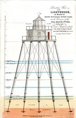 The Wyre Light was a 40-foot (12 m) tall iron screw-pile lighthouse marking the navigation channel to the town of Fleetwood, Lancashire, England.[3]