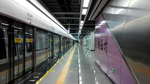Xiangxicun station (Chinese: 向西村站; pinyin: Xiàngxī Cūn Zhàn) is a metro station of Shenzhen Metro Line 9. It opened on 28 October 2016. This station is located under the intersection of Chunfeng Road and Dongmen South Road.[1]