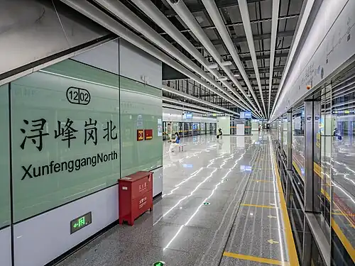 Xunfenggang North Station (simplified Chinese: 浔峰岗北站; traditional Chinese: 潯峰崗北站) is a station on Line 12 of the Guangzhou Metro. It is located underground on the west side of the intersection of East Xunfengshan Road and Huicai 1st Street in Jinshazhou, Baiyun District. It opened on 29 June 2025.[1][2]