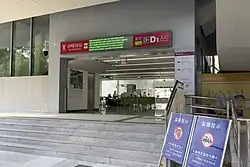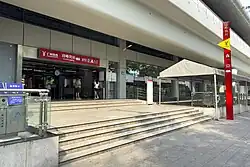 Xunfenggang Station (simplified Chinese: 浔峰岗站; traditional Chinese: 潯峰崗站) is an interchange station between Line 6 and Line 12 of the Guangzhou Metro, and serves as the western terminus for both lines.[1] The Line 6 station started operations on 28 December 2013.[2] It is located at the south of the area of Xunfenggang (浔峰岗), A1 Road, Jinshazhou, Baiyun District.[3] The terminus approaches near Lishui, Nanhai District, Foshan, which is just over the hill next to the station.[4] Line 12 opened at this station on 29 June 2025, thus becoming an interchange station.