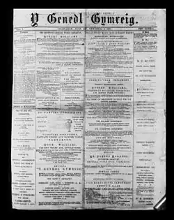 Y Genedl Cymreig (established in 1877) was a weekly Welsh language newspaper containing general news and information. It was published by Thomas Jones.[1]