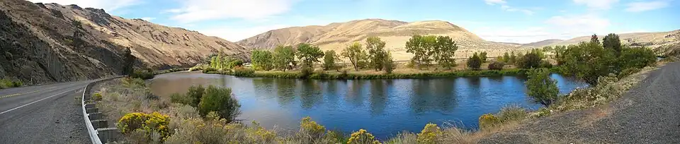 ![]() State Route 10 winds past the Yakima River near the town of Thorp. | |