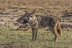 Including Sri Lankan elephant, 44 species of mammals are resident in Yala National Park,[2] and it has one of the highest leopard densities in the world.[11] 25 individual leopards are estimated to roam in Block I.[12] The elephant herd of Yala contains 300–350 individuals.[13] The Sri Lankan sloth bear, leopard, elephant, and wild water buffalo are all threatened mammals that Yala harbours. Although water buffaloes are indigenous to Sri Lanka, most populations contain genes of the domestic stock or have descended from feral populations. Toque macaque, golden palm civet, red slender loris, and fishing cat are among the other mammals that can be seen in Yala. The elephant population of the park varies seasonally.[9]