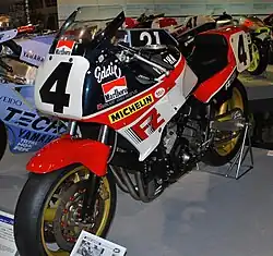 The FZ750 engine mounted in a Bimota chassis as the Bimota SB4 placed first in the inaugural Superbike World Championship round in 1987.[11][12][13]