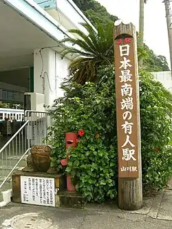 Yamakawa Station (山川駅, Yamakawa-eki) is a passenger railway station located in the city of Ibusuki, Kagoshima Prefecture, Japan. It is operated by JR Kyushu.[1][2] A monument at the station proclaims it to be the southernmost conventional staffed railway station in Japan.