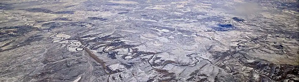 The Yampa drains 7,660 square miles (19,800 km2) of mostly semi-arid plateau country in northwestern Colorado and a small portion of southern Wyoming. The bulk of the watershed is located between the Park Range, to the east; the Flat Tops, to the south; and the Uinta Mountains, to the west. The Great Divide Basin, an area of closed drainage, borders the Yampa River basin to the north. The Continental Divide runs along the north and east sides of the Yampa basin, separating it from the headwaters of the North Platte River, which flows into the Mississippi River system. On the south, the Yampa River basin is bordered by that of the White River, which like the Yampa flows in a westerly direction to join the Green.
