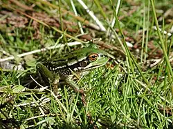 Limited historical information is available on frogs in Yanga National Park, but historical and recent surveys have recorded a total of 12 species of frogs from three families within the park.[1][30] This includes the southern bell frog (Litoria raniformis) which is listed as endangered under the Threatened Species Conservation Act.[1] The southern bell frog was once widespread and abundant throughout south-eastern Australia,[31] but since the early 1980s its population and distribution have been reduced to a critical level.[21][32] As there is limited historical and frog information from this area, it is not known when the southern bell frog populations began to decline within the area. However, it has been identified that the southern bell frog is vulnerable to habitat loss, fragmentation and degradation, altered flooding regimes, drought, predation by introduced fish and predation by other introduced species such as feral pigs and foxes.[31][33]