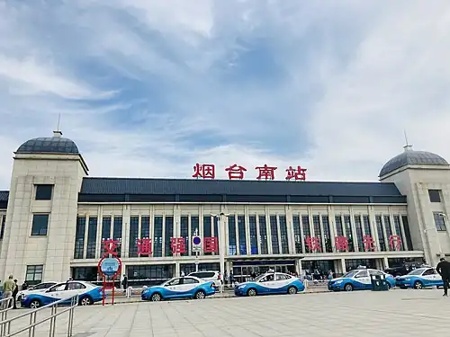 Yantai South railway station (Chinese: 烟台南站; pinyin: Yāntái Nán zhàn) is a railway station located in Laishan District, Yantai, Shandong, China. Unlike the older Yantai railway station, this is a through-station. It opened with the Qingdao–Rongcheng intercity railway on 28 December 2014.[1] It is also served by Tianjin–Weifang–Yantai high-speed railway.[2]