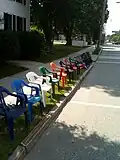 Chairs set out and roped together as people stake their viewing locations for the festival parade -