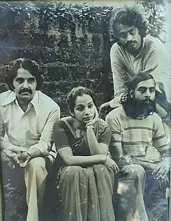 ![]() Yaro Oraal production still with the cast (from left) Verma, Protima, ACK Raja and T. Ravindranath (above) | |