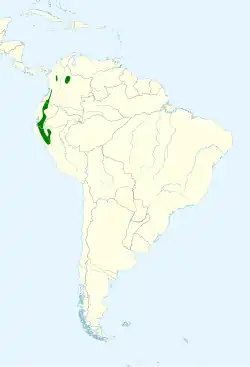 It is found in forest and woodland in the Andean highlands of northern Peru, through Ecuador and Colombia, to far western Venezuela. It is generally common, and therefore considered to be of least concern by BirdLife International. A new subspecies, A. l. yariguierum, was described in 2006 from Serranía de los Yariguíes in Colombia.
