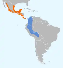 It breeds from southern Texas (occasionally the Rio Grande Valley) in the United States and the western and eastern mountain ranges of northern Mexico (the Sierra Madre Occidental and Sierra Madre Oriental—also the Cordillera Neovolcanica) south to central Panama. It is migratory, wintering in the northern and eastern Andes and the western Amazon basin. This vireo occurs in the canopy and middle levels of light woodland, the edges of forest, and gardens at altitudes from sea level to 1500 m.