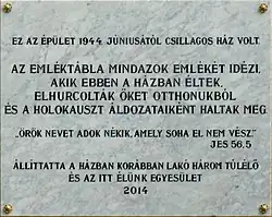 The yellow-star houses were a network of almost 1,950 designated compulsory places of residence for around 220,000 Budapest Jews from 21 June 1944 until late November 1944. Both the houses and their residents were obliged to display the yellow star by Budapest mayoral decree.[1]