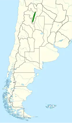It is found in the Andean foothills of northwestern Argentina.[2] Its natural habitats are subtropical or tropical moist montane forest and subtropical or tropical high-altitude shrubland.